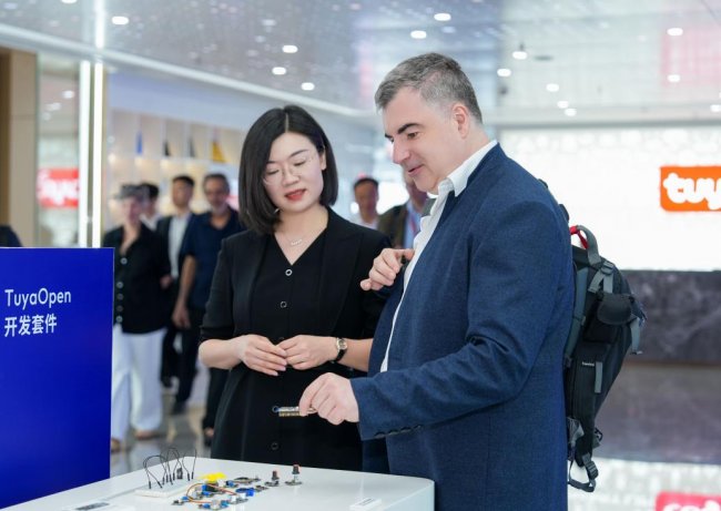 4 月 13 日,在第三届香港世界青年科学大会暨香江诺贝论坛期间,诺贝尔物理学奖得主康斯坦丁・诺沃肖洛夫,全球首位阿贝尔、图灵奖双料得主阿维・威格森,欧洲科学院院士、新加坡南洋理工大学教授吴应贵,与布达佩斯技术与经济大学电信与人工智能系副主任阿提拉・维道奇等一行前往深圳前海特区,到访涂鸦智能位于深圳的国际业务总部。涂鸦智能欧亚大区总经理俞菲等陪同参观。